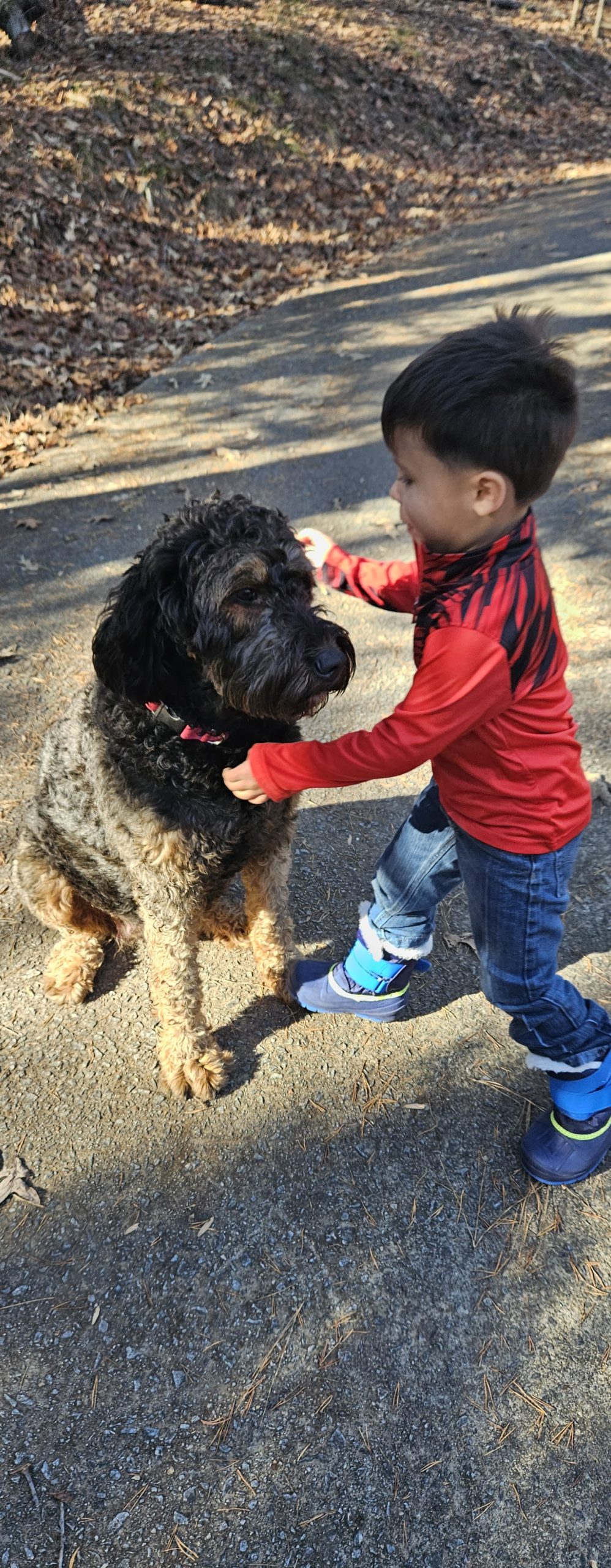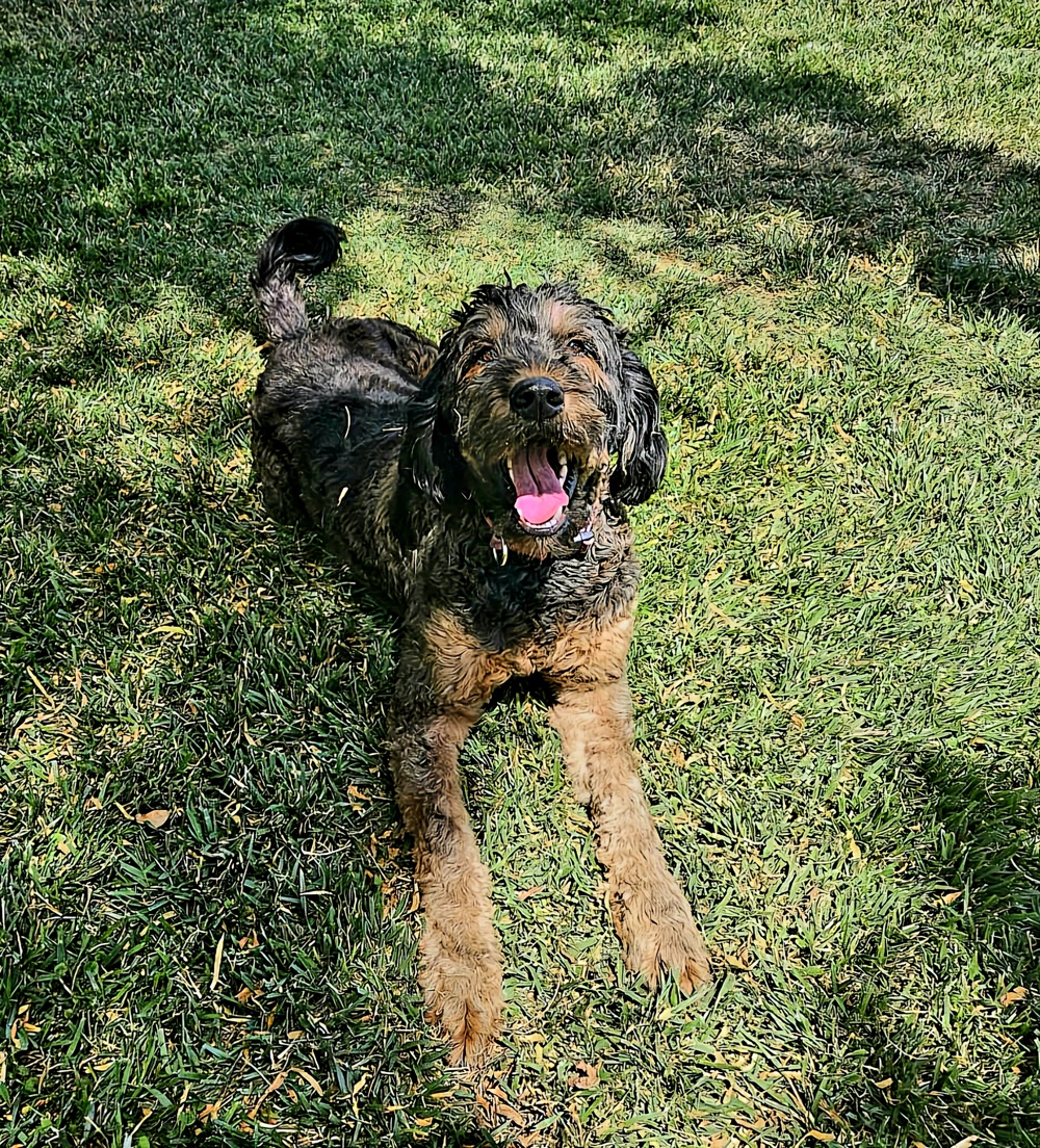 Zoey is our F1 Standard Bernedoodle and the inspiration behind Homegrown Hearts Doodles. She is everything we hoped for in a family dog: sweet, patient, playful, and incredibly gentle with our two young boys.